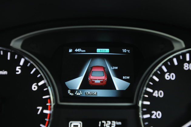 メーター中央の「アドバンスドドライブアシストディスプレイ」。写真はBSW(後側方車両検知機能)やLDW(車線逸脱警報)の設定状態を表す表示。