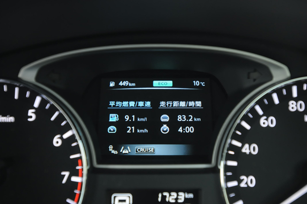メーター中央の「アドバンスドドライブアシストディスプレイ」。写真は「エコ表示」。