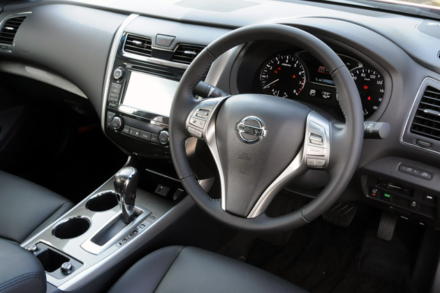 「モダンリビング」をうたった初代ティアナの個性から考えると、至ってシンプルなデザインとなった3代目ティアナのインパネ周り。