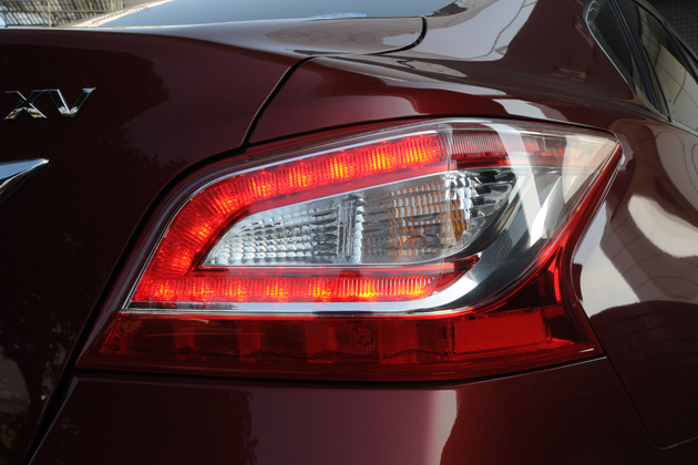 ヘッドランプ同様の意匠が与えられたリアコンビランプの形状。