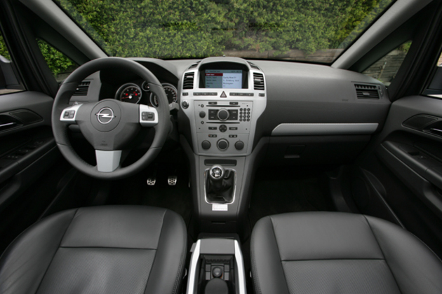 インテリア回りのデザインもアストラと共通する要素が多くなる。ステアリングホイールやメーターパネルはアストラと共通のものだし、液晶ディスプレーやオーディオ、エアコンなどのパネルも共通のものとなる。シフトレバーが従来より高いインパネに設置され、U字型のパーキングブレーキレバーを採用することなどはザフィーラならではの要素だ。