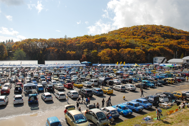 クラブ・ルノー・キャトル・ジャポンのメンバーたちが隊列を組んで会場入りし、カラー毎にグループとなって駐車していた。