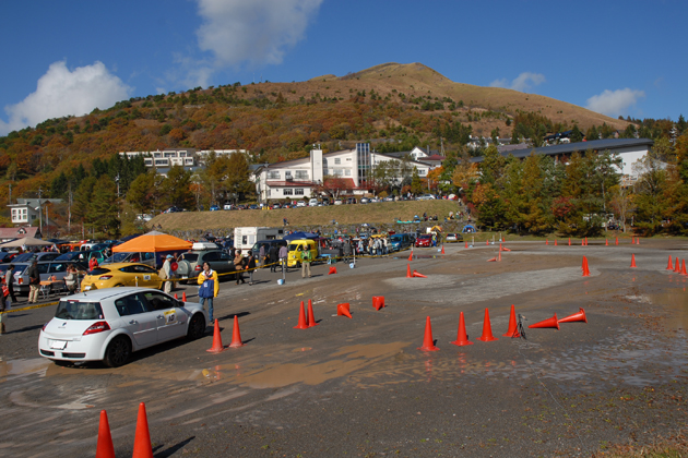イベントに合わせぴかぴかに磨かれていたはずのメガーヌRSも、ジムカーナに出場し水溜りに「バシャーン!」