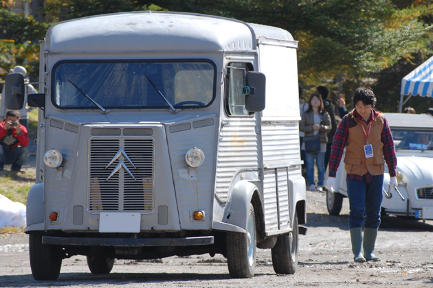 見た目とは裏腹に、シトロエン 2CVやDSあたりと多くのコンポーネントを共有するシトロエンHトラック(アッシュトラック)もクランク始動が可能なので参戦。手慣れた技で一発始動させ会場を沸かせた。