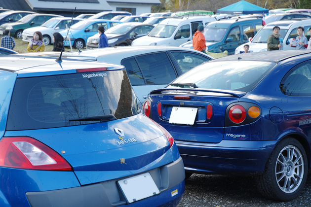 新旧のモデルが入り乱れるのはルノーメガーヌ オーナーズクラブ「メガニスト」の集団。