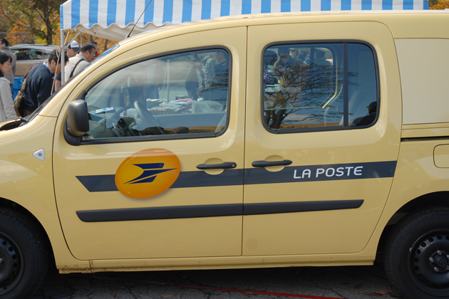 フランス郵便局の集配車両をイメージしたペイントが施されたカングー。フランスでは郵便局のクルマは黄色なのだ!