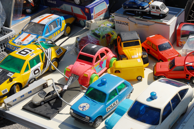一般参加ユーザーの出店ブースより。かわいらしい70年代頃のミニチュアカーが並ぶ。