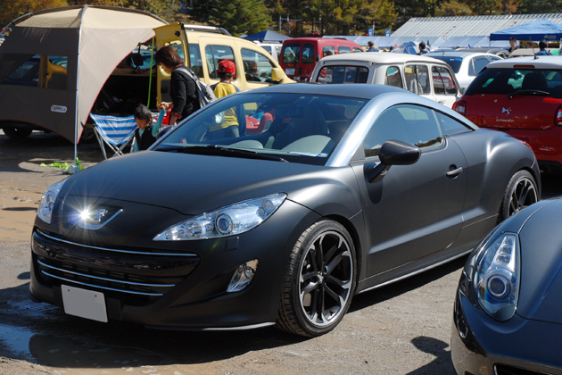 カラフルなモデルが多いFBM会場で、ワルそうな匂いを放っていたプジョーRCZの限定車「アスファルト」。マットブラックのカラーで、ココだけ夜のムード!?
