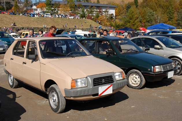 なんとびっくり、日本にはほとんど現存していないと思われる「シトロエン VISA」が2台も! しかも左は初期モデル(右は正規モノのVISA GT)。