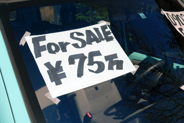 フランス車好きの人々が集まるFBM会場では、愛車にこのようなメッセージを掲げるユーザーを見かけることも。かく言う編集部Tも、過去に2回(プジョー205とルノールーテシア)個人売買をココでしたことがある・・・