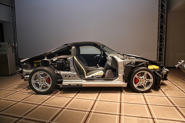 リファインが行われたミッドシップ・レンジのモデルの中から今回スペインで開催された国際試乗会の場に用意されたのは、3.4Lエンジンを搭載した『ケイマンS』のデュアル・クラッチ・トランスミッション“PDK”仕様のみ。技術的目玉のひとつである“PDK”にスポットライトが当てられたのは半ば当然として、クーペ・モデルであるケイマンの、それもより強力版である『S』グレードにテスト車両が限定されたのは、どうやら同じロサンゼルスの地でデビューとなった日産の新型フェアレディZに対する対抗心も皆無ではないようだ。