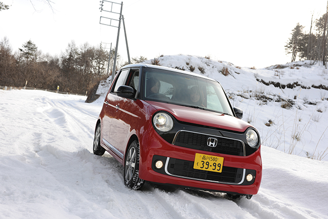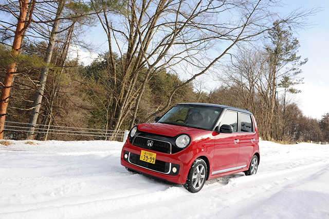 スタッドレスを装着しているだけでなく、N-ONEは横滑りなど急激な挙動変化を抑えるVSAを標準搭載しているので、滑りやすい路面でも安心です。そういった安全装備を満載しているところも人気の秘密なんですね。つまりN-ONEには、由美姉さんが言うような“手薄なところ”はないくせに、乗員をしっかり「守ってくれます」(笑)。