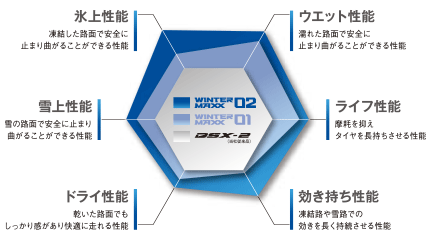 すり減りにくいゴムで長く使える「ロングライフ」。凍結路面でしっかり止まれる「氷上性能」。この3つの性能を追求した結果誕生したダンロップ史上最高傑作スタッドレスタイヤが、WINTER