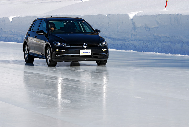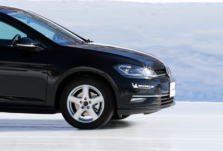 そして20Km/hからブレーキを踏むと、非常に安定した姿勢のままクルマが止まった。これほどのアイス路面でも電子制御に頼ることなく発進〜加速ができる、X-ICE3+のアイスグリップ性能に改めて感心する。