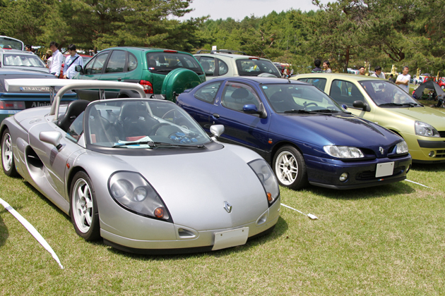 シルバーのスポーツカーは「ルノー スポール スピダー」。アルミスペースフレームにFRPボディ。これが正規輸入モデルだったのだから驚く。