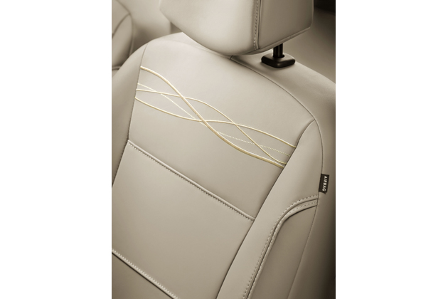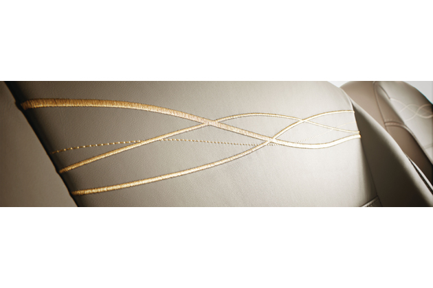 ルノー ルーテシア イニシアル・パリ[30台限定] ベージュレザーシートは専用の刺繍とパイピングが施された高級な仕立て