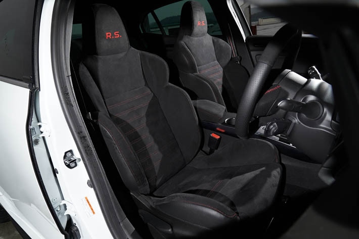 具体的に言うと「標準RS」に対してリアはバネレートのみを35%高め、フロントはアンチロールバーを7%、バネレートを23%、ダンパーレートを25%すべて強化してロール量そのものを抑えている。