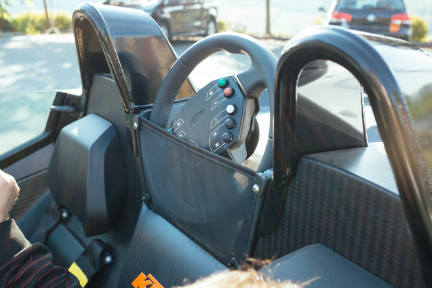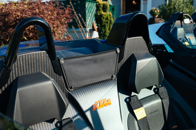 単なるレーシングカーのロードゴーイング版に留まらず、こうして細部に渡りデザインが施されているのもX-BOWの魅力のひとつ。