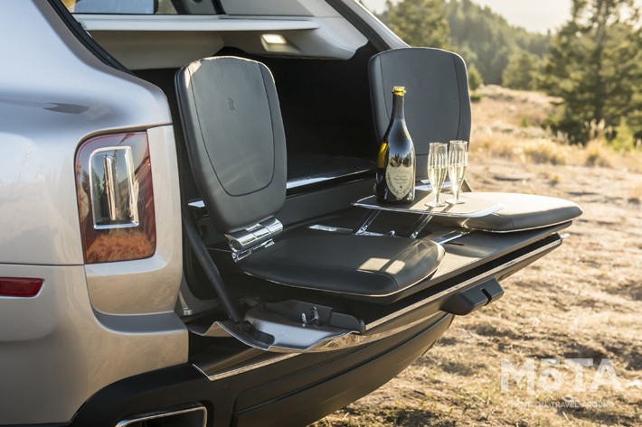 ビューイング・スイートは、ボタンを押すだけで、自動的に椅子とテーブルのセットが現れる。この豪華な特注装備であるレザーチェアに腰をかけながらお茶やお酒を楽しむことができるほか、美しい景色を眺めたり、スポーツイベントを観戦したりすることも可能と、なんともロールス・ロイスらしい優雅なひとときが過ごせるのもポイントだ。