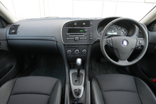 インテリア周りのデザインは2007年モデルの段階で改良が加えられたこともあって、今回はカラーが変更された程度にとどめられた。インパネの中央部分を運転席側にやや傾けて配置するドライバーオリエンテッドのデザインは、サーブのアイデンティティーとして、今回の9-3にも受け継がれている。エアロにはワンセグ対応のカーナビが標準装備されている。蝶が羽を開くように展開するカップホルダーのデザインはサーブならではのものだ。