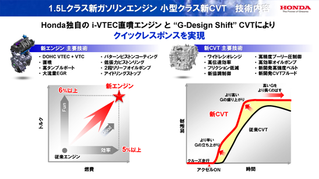 1.5リッタークラス新ガソリンエンジン+小型クラス新CVT技術[Honda Meeting2012報道向け資料より]