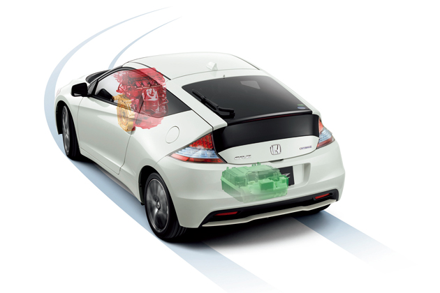 ホンダ市販ハイブリッド車初のリチウムイオンバッテリー搭載車となった新型CR-Z(マイナーチェンジモデル)。前期型CR-Zに搭載するニッケル水素バッテリーに比べ、約1.5倍の電圧を発生することでモーター出力を向上し、より力強い走りを実現した。