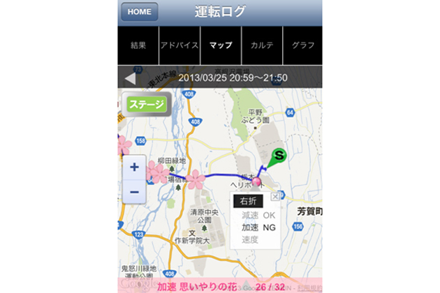「安全運転コーチング」機能 運転ログ 画面イメージ