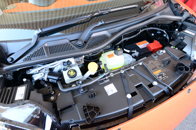 フロントのボンネットは冷却水などのメンテナンス用。《新型「smart fortwo edition 1 lava orange」(スマート フォーツー エディション ワン ラバオレンジ/2人乗り/2015年10月28日発売・限定220台) [ボディカラー:ラバオレンジxブラック/内装色:オレンジ(ファブリック)]》