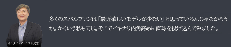 スバルは熱烈なファンが多いので、最初から厳しい質問になります。現行レガシィ以後「スバルは変わったな」という印象を受けます。