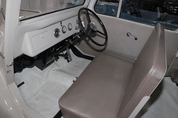 ※左:パワーウィンドウ普及前のウィンドウハンドル(車輌はたま 電気自動車[1947年])/ 右:社外製パワーウインドウキットを装着した日産 プレーリー