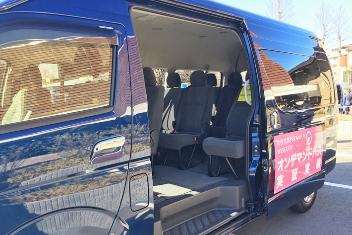 オンデマンド交通は、株式会社未来シェア(Mirai Share)のAIシステムを使っています。美しが丘エリアの中に乗降場所を17か所設置し、コミュニティバスの用に回りながら、利用者からリクエストがあると、ルートを変えて、迎えに行くというかたちです。利用者がスマートフォンで自分が「乗る」場所と「降りる」場所を指定すると、幾人かのリクエストをAIがヒトに代わり考えてくれるので、ドライバーはAIが教えてくれる場所へ利用者を迎えに行くというシンプルな内容です。実証実験は会社員をメインとした20~70代、参加者数は52名。
