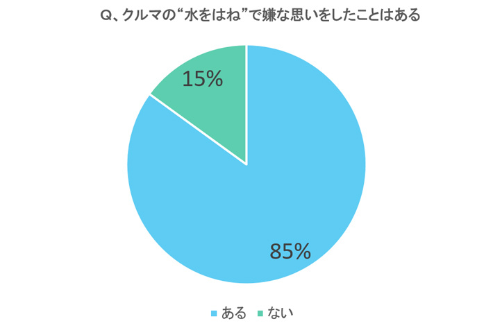 調査の結果、クルマの水をはねで嫌な思いをしたことはある人の割合は、回答者の8割以上という結果になりました。