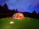 一日一組限定の特別プランでゴルフプレー1.0R終了後に18番ホールのフェアウェイを貸切りテントを設置。ディナーはオープンテラス席で、プレミアムディナーコースを堪能でき、テントでは自然の星空の下で焚火を囲みながらゆっくりと過ごすことができる。