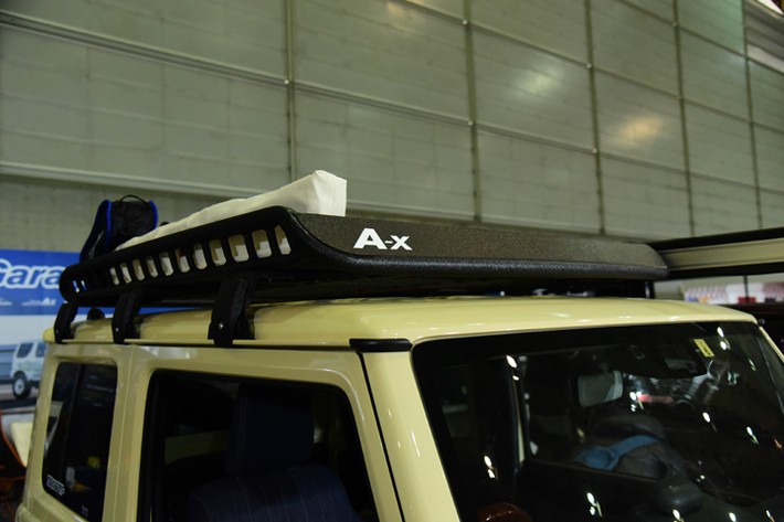 そして注目のパーツはショウワガレージオリジナルの軽量で錆びないアルミルーフラック「A-x(エー・クロス)」だ。こちらは結晶塗装がされており、アルミ製とは思えない重厚な質感を見せていた。
