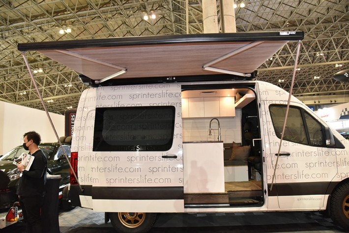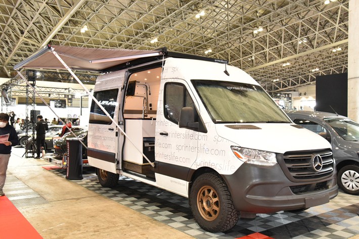 給排水設備やベッドキットなどを備えた、旅のお供に頼もしいW907スプリンターを披露した。また、スプリンターライフでは日本未発売のメルセデス・ベンツ・シタンの並行輸入販売も開始。スプリンター同様、バンライフ仕様や車中泊仕様にカスタムしたコンプリートカーの販売も受け付けている。