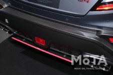 「WRX S4 STIパフォーマンスコンセプト」も、すでに市販済みとなるBRZ STIパフォーマンスとほぼ同じ各パーツに加え、参考出品となるBRZのものと近い形状となるドライカーボンリアスポイラー、パフォーマンスマフラーを装着。