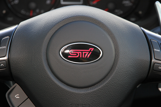 スバル エクシーガtS(EXIGA STI Version)専用本革巻ステアリングホイール(STIオーナメント入り、赤ステッチ)