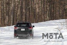 フォレスターの4WDは、電子制御される多板クラッチを使って前後輪に駆動力を分配するが、ディープスノー・マッドモードになると、前後の駆動系を直結状態に近づける。滑りや空転が生じる路面であることを前提に、劣悪な状態から脱出するための制御も行う。