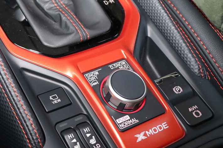 このX-MODEが新型フォレスターではより進化し、これまで1モードだった制御が「SNOW・DIRT」と「DEEP SNOW・MUD」の2モードに変更され、路面状況に応じて選択できるようになった。