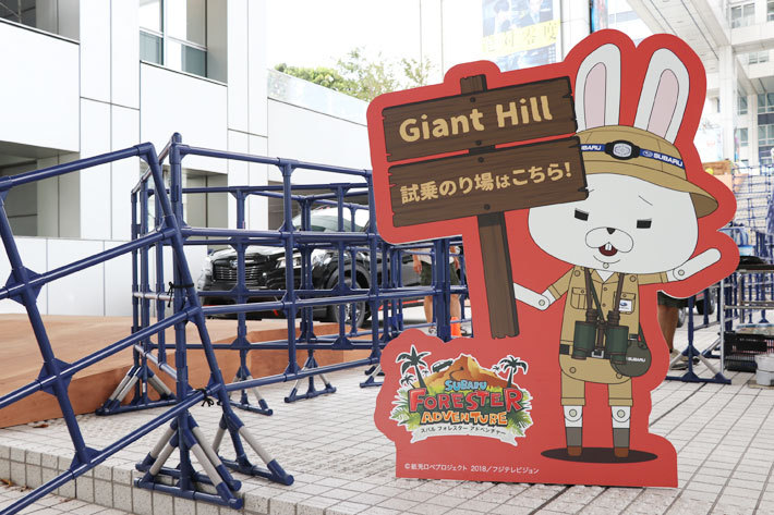 ジャイアントヒルは、急こう配(約22度)を新型フォレスターが駆け抜けるというもの。スバルのSUVにはX-MODE(エックスモード)と呼ばれる機能が搭載されているが、これは悪路走破性を通常よりも高める機能で、先代フォレスターをはじめ、レガシィアウトバック、XVにも搭載されている。