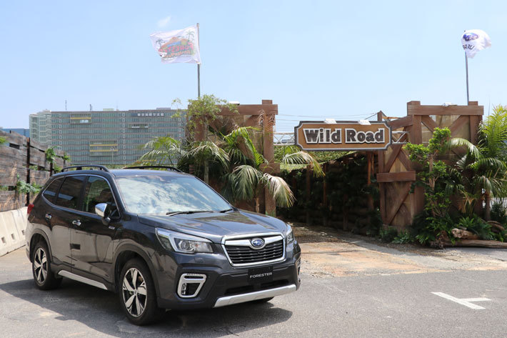 次に体験したのはワイルドロードだ。バスで会場を移動すると、ジャングルのような入り口が見えてくる。ここでも新型フォレスターの様々な機能を体験することができる。