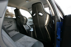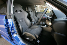 アンダースカート同様、やはりドライカーボン製となるシェルを用いるレカロ社との共同開発によるフロントシートも、S203からのアイテムを受け継いでの採用。ただし、そのパッドの入れ方にはさらなる工夫が施され、「より一層のホールド性を得るのに成功している」という。また、目に付きにくい部分ではフロア全体に毛足の長い“マスバック付きカーペット”を用いたのもS203とは異なるポイント。「重量的には3kgほどのプラスとなるものの、ロードノイズやトランスミッション・ノイズの低減に効果が大きいので敢えて採用した」とされている。