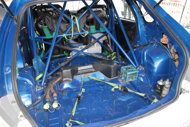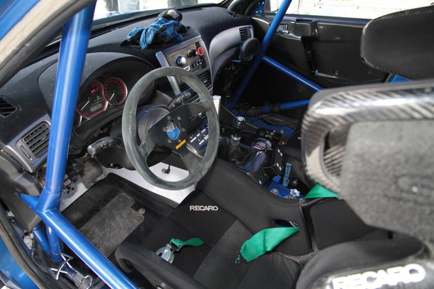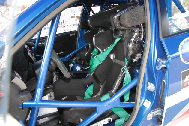 新井選手のWRX STI R4 MODELに同乗させてもらうマリオ。