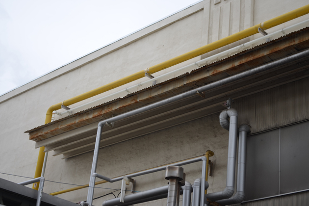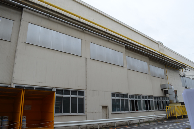 まずは、本工場内の旧中島飛行機時代から存在する建物に衝撃を受けました。なんと、太平洋戦争で活躍した「隼」や「疾風」などの戦闘機を製造していた時代の建物がそのまま残っており、今もプレス工場として稼働しているのであります。パッと見は普通の工場という感じですが、よく見ると壁が完成した飛行機を出荷するために開く巨大なトビラになっており、開閉時に使うレール部分が確認できました。当時は、ここから自走で滑走路まで移動していたそうです。