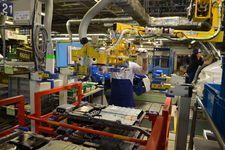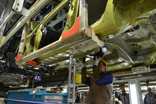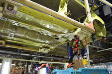 矢島工場では第5トリムと呼ばれるラインを見学。トリムというのは、サスペンションやパワートレーン、内装など様々なモジュールパーツをボディシェルに取り付ける工程のことで、アンダーボディのスポット溶接をしていた自分にとっては、花形の工程といえます。