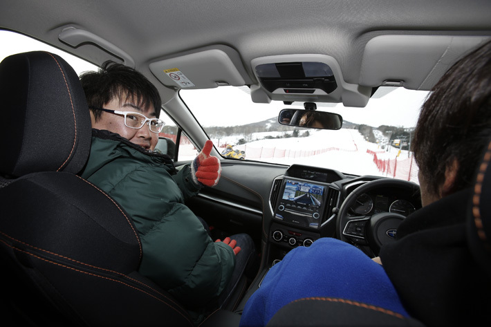 ちなみに、今回ゲレンデタクシーとして乗車した各車の印象は、XVは非力だが安定感はピカイチ、レガシィアウトバックはゆったりした動きとフラッグシップらしいしなやかな足さばき、そしてフォレスターは2車に比べるとじゃじゃ馬なハンドリングと、こんな状況であっても3車の特徴もシッカリ感じられた。