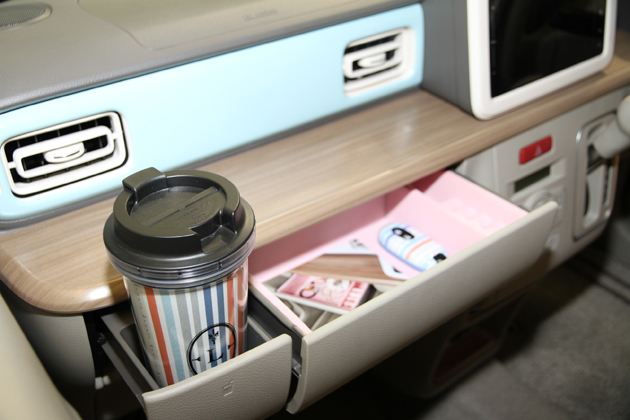 500mlの紙パックにも対応するインパネドリンクホルダー(運転席)