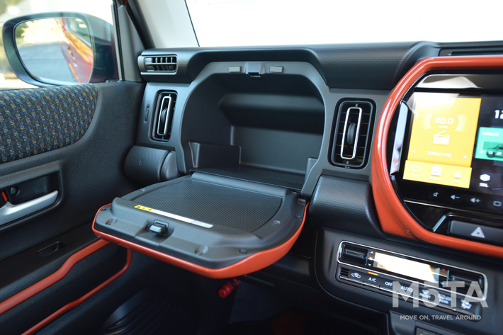 ハスラーの助手席に折りたたみテーブル!? 収納機能だけでないスペースがお見事
