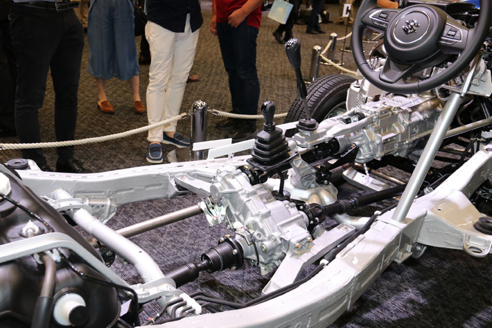 新型ジムニー・ジムニーシエラは、新設計のラダーフレームを採用した。X(エックス)メンバーと前後にクロスメンバーを追加したことで、ねじり剛性が先代モデル比で1.5倍向上。さらに、車体とラダーフレームをつなぐボディマウントゴムを新設計して、乗り心地や操縦安定性がアップした。