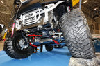 ボンネットと一体化したフロントグリルやブラックアウトが効果的なデザインのフロントバンパー、タフなRV車を強調する装着されたオーバーフェンダーなどのエアロパーツは、クローラーの迫力に負けないワイルドなデザインだ。
